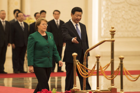 Lors d’une réunion à Pékin, Michelle Bachelet, présidente du Chili et Xi Jinping secrétaire général et président de la...